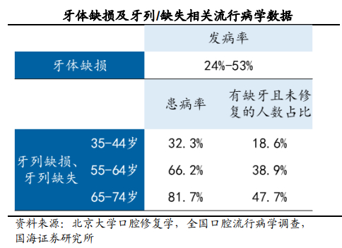 据了解,中日友好医院曾在2021年9月发布一组数据,其中,成年人牙周病发病率达86%,牙颌畸形发病率达72%。而缺牙问题又是口腔疾病中不容忽视的存在,且体现为随年龄增长而逐渐增加。