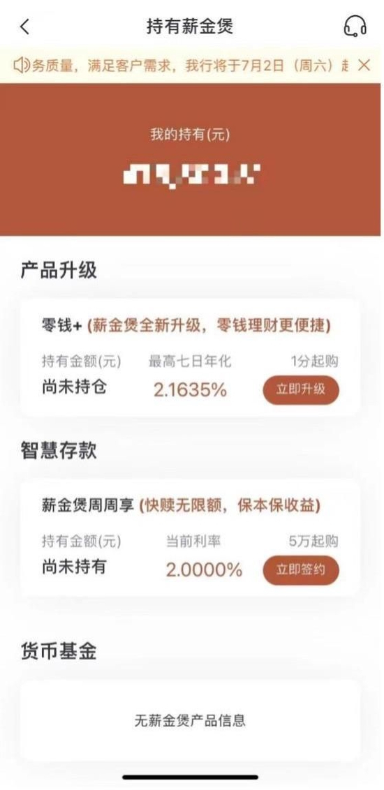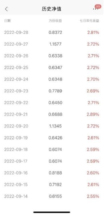 点进产品详情页,展示七日年化收益率和万份收益,也附上了详细的每个运作日更新的七日年化收益率和万份收益的表格。不过,未能像建行一样在明显位置展示七日年化收益率的计算公式,也没有像中信银行一样说明“七日年化收益率仅代表历史收益水平”。