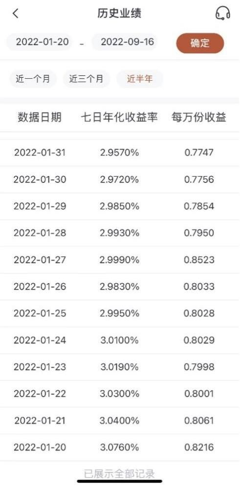 下方展示七日年化收益和万份收益的图表,给了“近1月”“近3月”“近6月”“近1年”四个选项。灰色“历史业绩”点击进入可以按需搜索历史业绩。21世纪资管研究院随机查询了2022年1月至今业绩,均能完整显示。而其他多家银行只能展示近1个月业绩,或者近3个月业绩,这一点中信银行APP要完善一些,信息透明度更高。