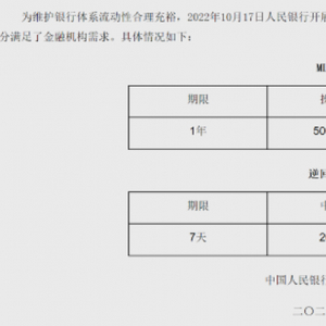 民生银行首席经济学家温彬认为,继8、9月MLF连续缩量之后,10月MLF等量平价续做,表明在内外因素综合考量下,当前央行不会大幅收紧流动性。