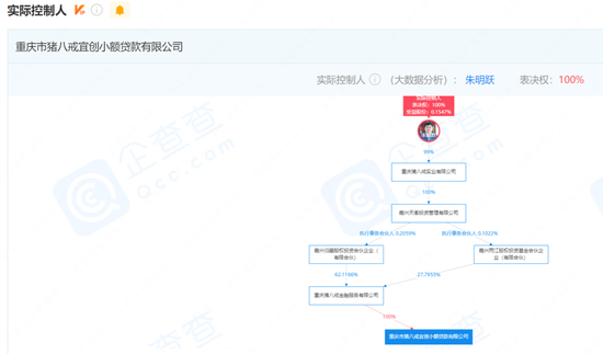 截止目前,上述金融公司已全部归于重庆猪八戒金融服务有限公司(以下简称“猪八戒金融”)旗下。而猪八戒金融的法人、高管以及股权上仍与猪八戒网关联颇多,其他三家金融公司也仍在正常运营中。例如,猪八戒金融法人和执行董事董长城为猪八戒网的董事,股权穿透后也能看到实控人仍为猪八戒网创始人朱明跃。
