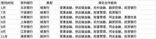 值得注意的是,战略签约并非这些银行间合作的开始。据介绍,这7家银行与网商银行开展业务合作最早始于2015年。