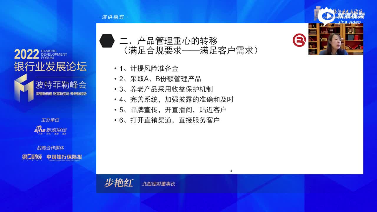 步艳红在2022银行业发展论坛波特菲勒峰会发表演讲