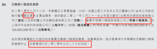 根据中国支付通2022年年报,2020年3月13日,该集团与前任执行董事严定贵实际拥有的第三方独立公司(即嘉银金科)签订买卖协议,出售建佳投资有限公司及其附属公司百联投资有限公司、众网小贷及上海洋芋信息科技有限公司(统称“建佳集团”)75%股权,代价分别为1.05亿元和1.2亿元。由于建佳集团执行中国支付通大部分的互联网小贷业务,故出售完成后,集团互联网小贷业务将终止。出售事项已在2020年9月29日完成。