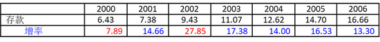 另外,2000-2006年度住户本外币存款余额(万亿元)和增长率(%)为: