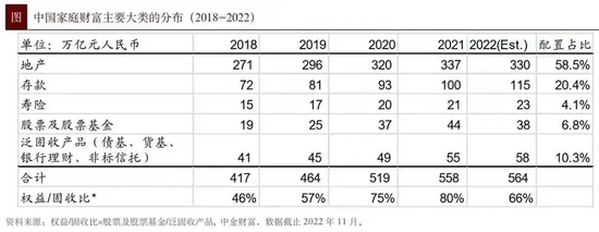 这里需要明确的是:存款只是住户财富的一部分,并不是住户财富的全部。存款与其他财富之间是会相互转化的。比如,中金公司发布的中国家庭(住户)财富主要大类分布如下(不一定非常准确,仅供参考):