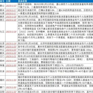 而江西九江及广东肇庆、韶关等城市则选择阶段性取消首套房贷利率下限:1月27日,广东移动政务服务平台“粤省事”发布指出,肇庆、韶关、湛江、惠州、云浮、江门六个城市自1月18日起阶段性取消首套房贷利率下限。