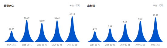 比如2017年,拉卡拉全年实现净利润为4.7亿元,同比增长40.2%。此后净利润逐年上升,至2021年净利润为10.83亿元,同比增速为16.3%。