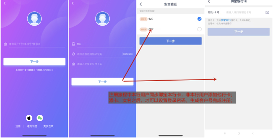 注册方面,持卡/非持卡用户在兴业银行App输入手机号码、认证码、证件号码,进行实名注册,设置登录密码即可完成注册。值得注意的是,注册与绑卡未分离,持卡用户绑定银行卡,非持卡用户绑定他行卡。