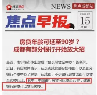 然而,80岁并不是还贷的年龄上限。据媒体报道,近日,记者以客户身份走访咨询了成都的一些商业银行,发现有银行“贷款人年龄+贷款期限”最长可达90岁,贷款期限最长30年。
