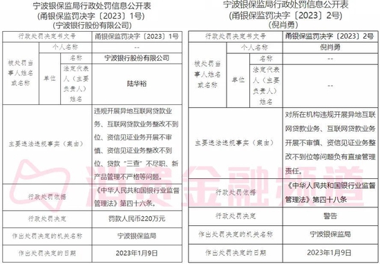 至此,宁波银行里程碑的成为全国首家明确因异地网络放款被处罚的地方性法人银行。