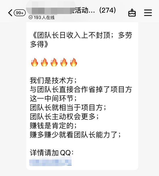 团队长有机会从项目方那里拿到“首码”,这或许才是团队长的最大动力。