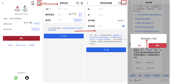 中国银行App支持本行/非本行用户注册,新用户输入手机号+验证码,填写身份信息,填写银行卡号,设置登录密码即可完成注册(非本行用户在线开户后完成注册)。值得注意的是,用户也可以跳过绑卡,直接设置登录密码。