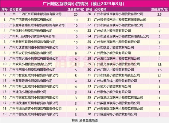根据名单信息,广州目前共有108家小额贷款公司,其中共有38家为网络小贷机构,可在全国进行放款;共3家小贷可在广东省内开展小额贷款业务;1家即广州立根小额再贷款股份有限公司,可在广东省内开展小额再贷款业务,在广州市内开展小额贷款业务;1家即广州地铁小额贷款有限公司可在广州、珠海、佛山、东莞、中山等5市开展小额贷款业务。
