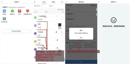 此外,App交互体验也存在大大小小的问题:一是,“银联二维码→账单”点击“返回”无法返回上一层页面;二是,“明细列表→自定义查询”的“查询”按钮在首屏无法看到,用户需要下拉才能看到,影响交互便捷度;三是,电子社保卡等第三方应用授权过程中,相关授权书提示不够便捷。另外,在多机型测试中,个别安卓机型出现不兼容的情况。