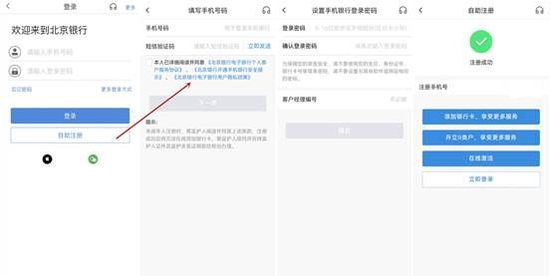 北京银行“京彩生活”App注册比较便捷,本行/非本行用户输入手机号码、短信验证码,设置登录密码即可完成注册。注册成功后,用户可以添加本行卡或他行卡,也可以开立二类户。遗憾的是,App尚未实现注册/登录一体化。