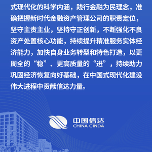 2022年,中国信达积极服务国家战略,聚焦国民经济重点领域和薄弱环节,加大对新能源、高新技术、国企改革、普惠小微等领域有效投放,实现自身高质量发展与推动实体经济高质量发展的良性循环。