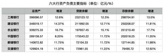 从总资产增速看,农业银行增速最高,达16.7%,与建设银行差距进一步缩小,仅相差6743.84亿元;中国银行是唯一一家增速未超过10%的大行。