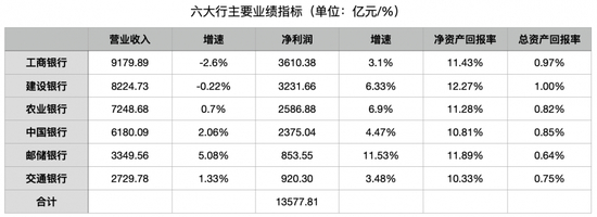 从净利润看,银保监会此前发布的数据显示,六大行净利润平均增速为5.03%,从财报看,工商银行、中国银行、交通银行低于平均水平,邮储银行最高,是唯一一家超过10%的大行;农业银行净利润增速在四大行中最高,为6.9%。