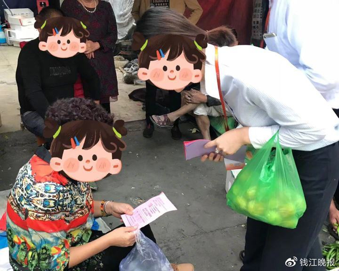 为了完成任务,杨蕾穿梭在大街小巷发传单;到菜市场、公园、贵族学校门口宣传摆摊;去车间、陌生单位扫楼办卡,甚至在婚礼现场的抽奖券上都印有她自己的理财名片。