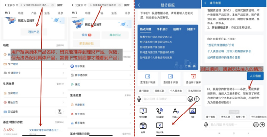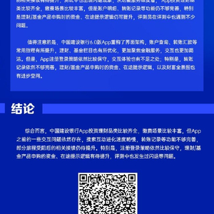 综合而言,中国建设银行App投资理财品类比较齐全,缴费场景比较丰富,但App之前的一些交互问题依然存在,搜索互动进化速度略慢,转账记录等功能不够完善,部分旅程受阻后的相关接续仍待提升。特别是,注册登录策略依然比较保守,理财/基金产品申购的资金、在途提示逻辑有待提升,评测中也发生过闪退等问题。