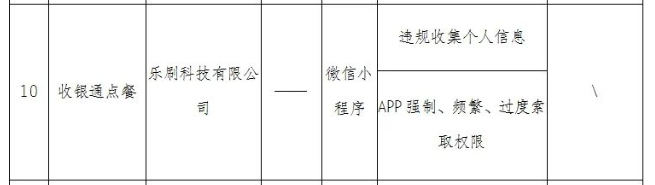 在未按要求整改的APP名单中,乐刷科技有限公司(下称“乐刷”)的“收银通点餐”微信小程序在列,存在的问题是:违规收集个人信息以及强制、频繁、过度索取权限。