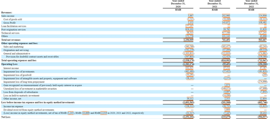 财报显示,2020年、2021年、2022年,玖富分别实现净收入12.56亿元、7.61亿元、5.62亿元,分别录得净亏损22.51亿元、2.34亿元和5.95亿元。