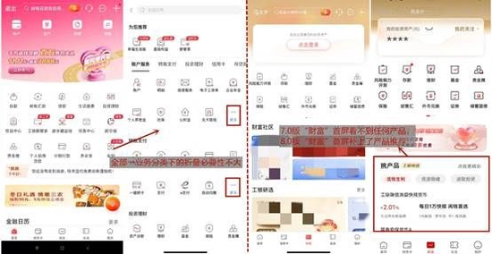 另一个重要频道“财富”也进行了重构,自上而下分为“导航、投资资产持仓、常用功能、财富社区、工银研选、梦想计划、财富锦囊”。遗憾的是,作为与用户投资紧密相关的主频道,“财富”虽然整合了众多功能服务入口,但是缺乏直观的产品推荐。
