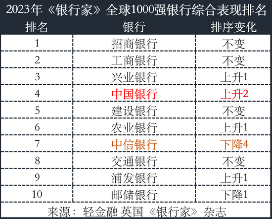 2023全球银行1000强综合表现:招行、工行、兴业、中行、建行排前五!
