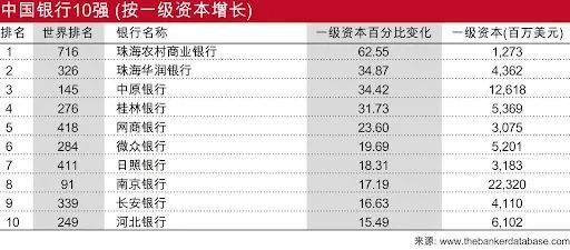 排名中的小型银行正在以更快的速度增长。例如,珠海农村商业银行在2022年的一级资本增长了62.6%,而作为挑战者银行的网商银行和微众银行都增长了20%左右。
