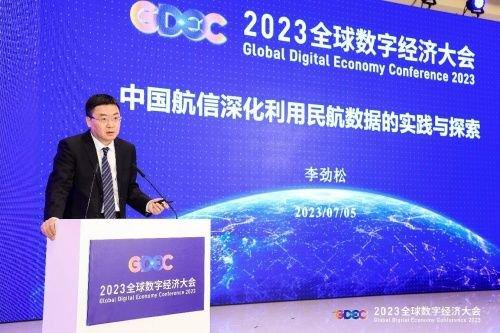 中国民航信息网络股份有限公司副总经理、总会计师李劲松先生以“中国航信深化利用民航数据的实践与探索”为题进行报告,通过介绍中国航信数字化发展的相关经验和丰富案例,分享了中国航信以数据跨领域协同推动业务跨界融合、联合枢纽机场共同探索区域数字经济发展的新模式。