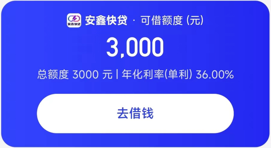 近日,开甲财经小编在某平台申请借款发现,一家名为“安鑫快贷”的平台给小编授信3000元额度,年化利率高达36%。
