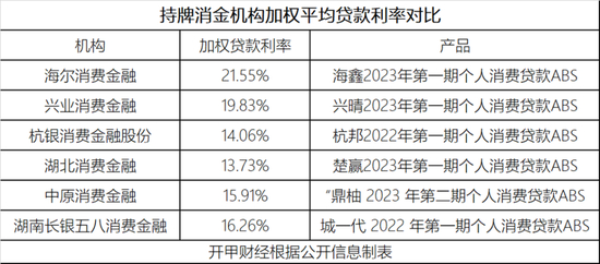 有意思的是,海尔消费金融在放贷利率上陷入了一种“自我分裂”的状态。在海鑫ABS说明书中,其披露的加权平均放贷利率为21.55%,最高24%,评级机构也由此认定,很高的加权平均贷款利率为证券本息的偿付提供了较好的信用支持。