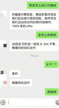 实习岗位的供不应求催生了一条内推产业链。在网站上搜索“金融实习内推”,出现在前的基本都是机构铺天盖地的广告。但实际上,部分内推参差不齐,有些甚至是花式骗局。
