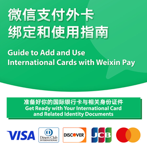 微信支付发布的外卡绑定和使用指南显示,境外人士通过微信支付绑定外卡只需要3步,一是下载或更新微信/WeChat应用程序,二是找到微信支付入口,三是填写身份信息和绑卡。支持的外卡涵盖VISA、DinersClub、Discover、JCB、Master。