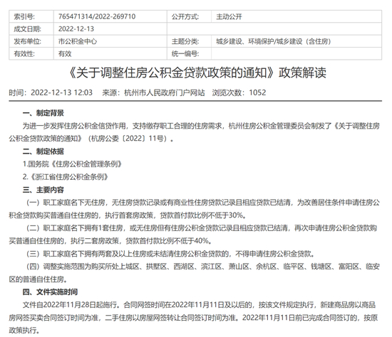 在此之前,杭州住房公积金管理委员会发布《关于调整住房公积金贷款政策的通知》明确,职工家庭名下无住房,无住房贷款记录或有商业性住房贷款记录且相应贷款已结清,为改善居住条件申请住房公积金贷款购买普通自住住房的,执行首套房政策,贷款首付款比例不低于30%。