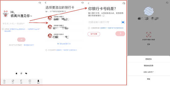 招商银行App新用户输入手机号、验证码,设置登录密码即可完成注册。注册成功后,用户可以添加本行/他行卡,且相关旅程比较便捷。