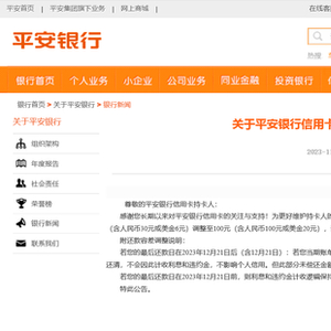 财联社11月6日讯(记者 梁柯志)近日,平安银行官网发布公告称,“为更好维护持卡人的权益,自2023年12月21日起(含12月21日),我行信用卡还款容差由30元(含人民币30元或美金6元)调整至100元(含人民币100元或美金20元),该服务无需主动申请”。