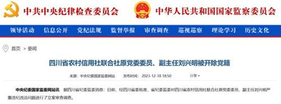 该联社原副主任刘兴明在四川联社工作多年,早在2016年12月就已退休。今年5月,中纪委官网显示,刘兴明涉嫌严重违纪违法接受审查调查。