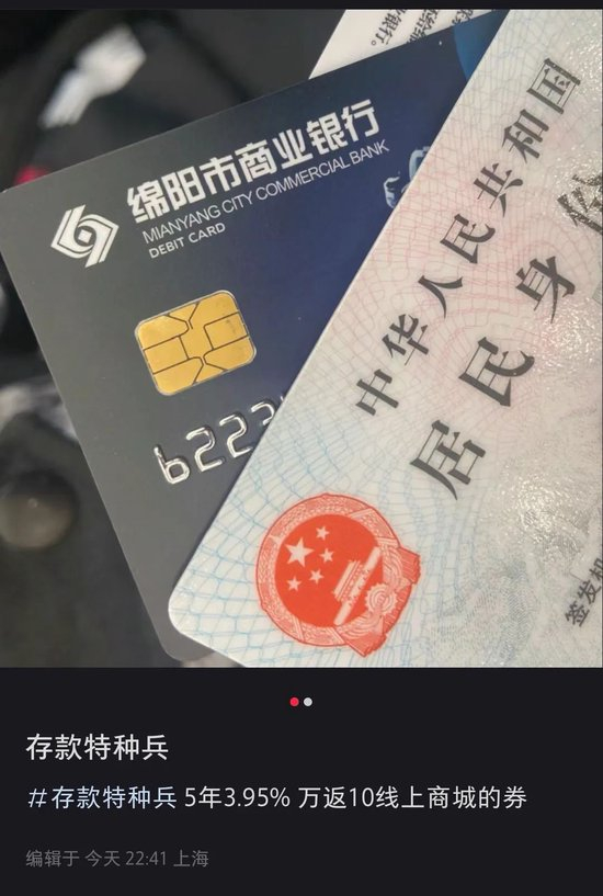 小新称,大额存单20万元起存,目前5年期利率为3.95%,3年期利率为3.55%,存50万元以上可以按万20比例返红旗券(成都市红旗连锁超市代金券)或小家电,如果外地储户不需要红旗券,后续会为客户邮寄某线上商城的购物卡,在手机上就可以使用。