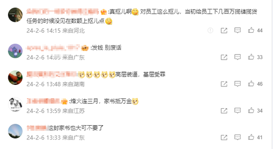 每到年底至第二年年初,为了攻坚开门红,银行业务员们身上写满了疲惫。在社交媒体上,有网友称,“当初给员工下几百万的揽储贷任务的时候没见在数额上抠儿点”“烽火连三月,家书抵万金”;还有网友吐槽,有的银行连家书都没有。