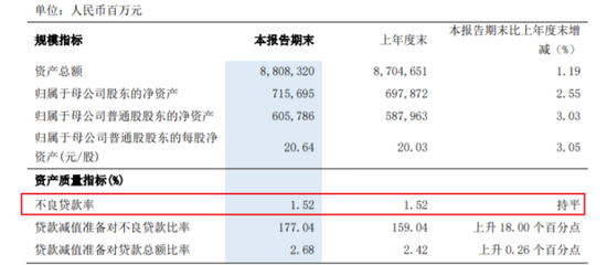 资产质量方面,前三季度,浦发银行不良贷款余额746.08亿元,较上年末减少0.11亿元;不良贷款率为1.52%,同比持平;拨备覆盖率177.04%,同比上升21.58个百分点。
