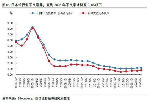 直至亚洲金融危机给日本经济再一次重击,1997-1998年北海拓殖银行、日本长期信用银行和日本债券信用银行三家大型银行相继破产,日本政府才意识到银行不良问题的严重性,开始积极调整政策措施,提出“金融再生计划”等策略,采用政府支持与市场化运作相结合的方式来化解不良。该阶段政府对存量不良的处置是卓有成效的,但成本也是巨大的,1992-2002年日本为处理不良贷款造成的损失约90万亿日元。但是由于经济持续低迷,新增不良源源不断,因此不良余额仍继续攀升,2002年不良率攀升至8.0%的峰值。面对严重的不良债权问题,日本当局提出要在三年内将不良贷款率减半的目标,正式推出“国有化计划”等一系列措施,不良处置方式更加铁腕。经过这次整治,日本银行业资产质量得到显著改善,2005年不良率降到3.5%左右。