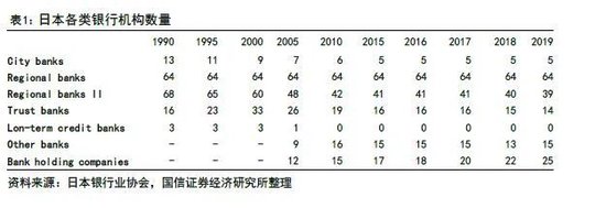 据日本银行业协会统计统计,日本前五大银行总资产份额从1996年的38.8%提升到了2017年的64.4%。同时,为了提升竞争力,地方银行业加大了合并的进程,区域性银行II从1990年的68家减少了现在的39家。