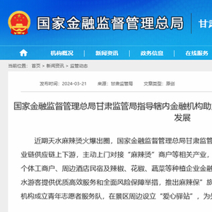 今日上午, 国家金融监督管理总局甘肃监管局发文,近期天水麻辣烫火爆出圈,甘肃监管局迅速部署,指导辖内金融机构聚焦文旅产业链供应链上下游,主动上门对接“麻辣烫”商户等相关产业,通过减免结算手续费等方式,有效满足景区个体工商户、周边酒店民宿及辣椒、花椒、蔬菜等种植企业金融需求。