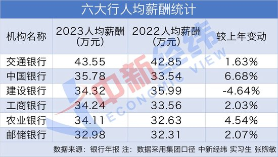 整体来看,2023年,六大行人均薪酬均超30万元,其中交通银行的人均薪酬在六大行中继续拔得头筹,达43.55万元。