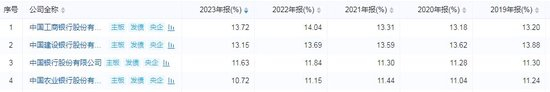 尽管四大行三项资本充足率整体下滑,但不论从自身看,还是对比其他主要银行看,仍处于较高水平,截至2023年末,工商银行、农业银行、建设银行、中国银行核心一级资本充足率分别为13.72%、10.72%、13.15%、11.63%,仍然将是维护金融稳定的压舱石。