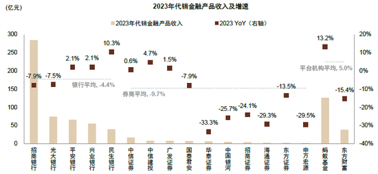 图表3:2023年样本银行、券商、平台类机构代销金融产品收入分别同比-4.4%、-9.7%、+5.0%