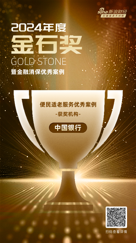4月15日金融一线消息,由新浪财经主办的“2024年度金石奖暨金融消保优秀案例评选”获奖名单隆重揭晓!多家机构的激烈竞争下,中国银行脱颖而出,其报送的“推进养老服务建设”相关案例荣获“便民适老服务优秀案例”一奖。