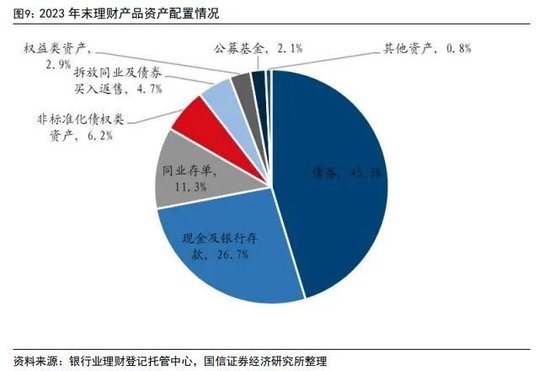 与银行自营相比较,理财配置债券比重更高,且以信用债为主,因此居民增配理财利好信用债市场。2023年末,理财产品配置债券的比重为45.3%,其中信用债占42.12%,利率债占3.20%。